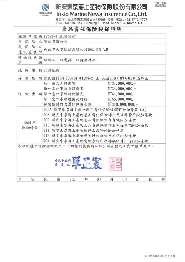 產品責任險 - 日本羽鈦 |純鈦美學精品館